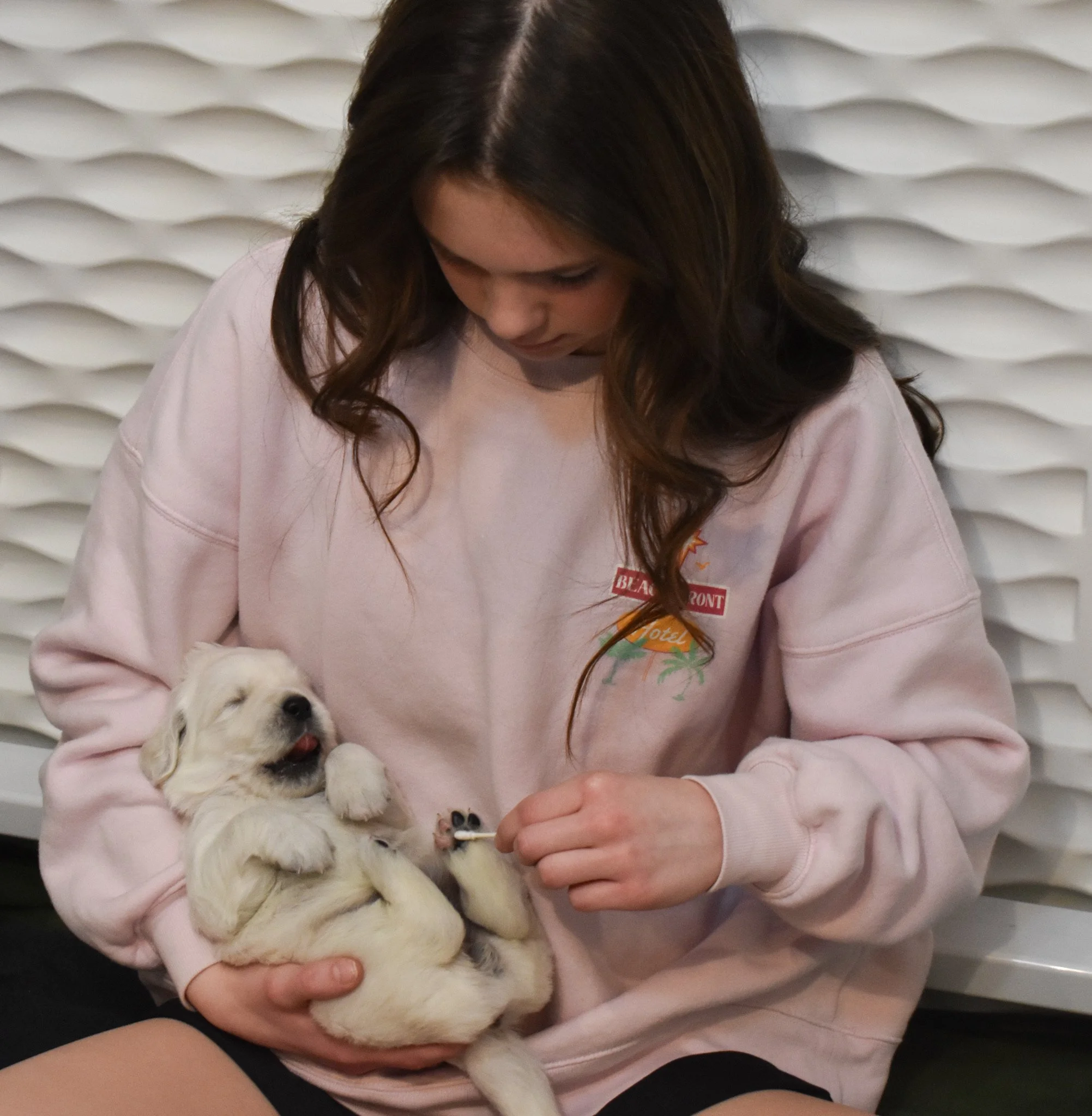 Puppy Helpers: Local children love to volunteer as our “puppy helpers”. It’s a win-win for everyone. Socialization for the puppies and snuggles for the humans!